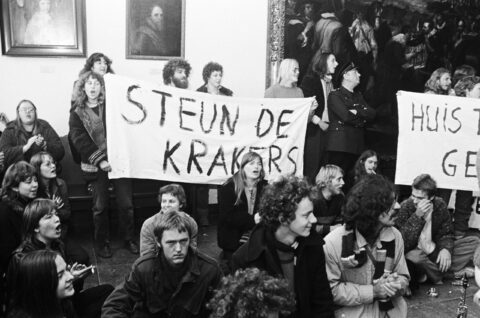 Steun de krakers, 1979. In the background, the painting by Fernando Coll at the Breda City Hall. Photo from the city archives.