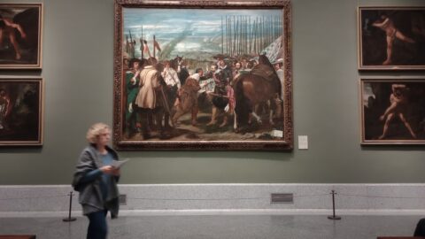 The painting La rendición de Breda depicts the surrender of Breda and is housed in the Prado Museum in Madrid. It is a significant work in Velázquez’s oeuvre and a prominent part of the Prado’s collection, permanently on display. When looking at the composition itself, the painting’s political role is evident: it portrays an honourable exchange between rulers, reinforced by a symbolic gesture—the handing over of Breda’s city key. The arrangement is highly theatrical, with no traces of battle, as the work is not based on an actual historical account but rather on a stage play. The painting is considered a key work in the canon of Spanish visual art, glorifying Spanish supremacy at a time when it was already in decline.