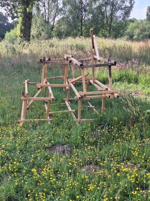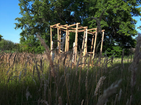 He also created a photo series of ten images centred on the castle in the air he built at the start of his working period. Originally conceived as a carefully designed intervention, the structure began to take on a life of its own during the observation period. It transformed from a concept into an entity with a will of its own, and the 49m² became a free state in which even the imagination itself was able to escape the rules.