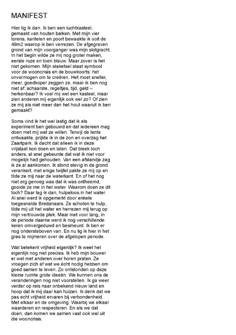 From 21 March to 21 June 2025, Rick Abelen was guest artist at the 49m² in Zaartpark. His stay culminated in a manifesto – written and spoken – reflecting on freedom and connectedness in relation to the housing crisis.