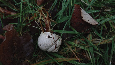 Light that got trapped there when the snails, still alive and crawling, absorbed the dew off the grass blades. Light that trickled down the columella; down the enshrouded chamber inside the apex of the bleaching shell when the flesh of the snail rotted away.