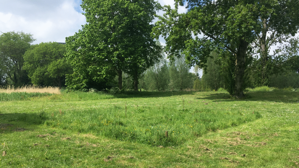 Een jaar geleden werd het terrein nog in tegenstelling tot de afgesproken voorwaarde gemaaid en besefte de gemeenten dat ze tegen de regels van het kunstwerk ingingen. Inmiddels twaalf maanden verder heeft de bepaling gewerkt, door letterlijk palen toe te voegen op de hoeken. De kaders zijn duidelijk en het gras en alle planten hebben mogen groeien naar eigen goeddunken. Het is nu wachten op het voorjaar om werkelijk de resultaten van de afwezigheid van de groendienst te mogen ervaren.