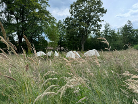 Als Artist in Residence van 49m2 zet Sanne haar beeldende onderzoek voort in het Zaartpark te Breda. Ze landt in vruchtbare grond: vragen uit haar praktijk over menselijk ingrijpen en publieke verantwoordelijkheid liggen ook ten grondslag aan het 49m2-project. Sanne kon aan de slag op het terrein tijdens de natste lente ooit gemeten. Het stuk grond was dan ook niet zozeer het frisgroene lentelandschap dat ze dacht aan te treffen, maar een blubberige modderpoel. Sanne voelde zich in dit landschap in eerste instantie even ontheemd als een eigentijds schaap aan de Schotse kust. Ze benaderde 49m2 in herder-modus; haar zintuigen stonden op scherp met een alerte waakstand, maar dat gevoel was zonder kudde moeilijk te plaatsen. Het zorgde er wel voor dat ze het landschap volledig op zich in kon laten werken.