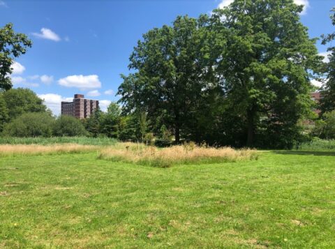 Rondom het 49m² stuk grond, dat ongemaaid een ietwat verwilderde indruk maakt, zien we een grasveld dat meer oogt zoals het strakke gazon dat ik eerder beschreef. Toen Axel het Zaartpark voor het eerst bezocht zag hij in dit grasveld vele molshopen. Ik lees op Wikipedia dat mollen verschillende gangen graven, verdeeld over meerdere dieptes. De gangen hebben diverse functies (de bovenste worden bijvoorbeeld vooral gebruikt om te jagen). Al het zand dat de mollen niet kwijt kunnen voor het verstevigen van het gangenstelsel, eigenlijk dus maar een klein beetje, wordt naar boven gewerkt en vormen molshopen. De gangen kunnen tot wel 200 meter lang worden en in het voorjaar, de periode waarin Axel het gebied verkent, is het vrouwtje druk bezig om de centrale ruimte – ofwel, het nest – te graven. De molshopen kun je zien als teken van ondergronds leven. Waar grondeigenaren van mollen af willen omdat de molshopen hun gazon ‘verpesten’ of aantasten, stelt Axel zich de ondergrondse wereld voor waarin ze leven. Hierin vind ik een terugkerende fascinatie bij Axel, namelijk het zichtbaar willen maken van het onzichtbare, van wat net aan ons zicht ontglipt. En het willen omkeren van een gegeven.