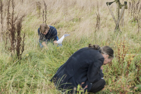 Als we klaar zijn met lezen nodigt Maud ons mee uit op expeditie naar dat kleine veldje van zeven bij zeven meter in het Zaartpark. We kiezen elk een plant uit en Maud vraagt ons om vooral niet op te zoeken hoe deze heet, maar om te kijken en ons onderzoekend op te stellen. Wat kunnen we leren van en over de planten wanneer we de wereld vanuit hun perspectief proberen te zien: hoe lang zijn ze hier al? Zijn we met veel, of zijn ze alleen? Wat voor leven hebben ze geleefd – het is eind september, de meesten zijn de bloei van hun leven voorbij. En wat denken ze eigenlijk van ons? Het is een manier van kijken die niet pretendeert te weten wat het ziet. In plaats van iets nieuws te leren over dit kleine grasveld, een grasveld waar ik nota bene al veel vaker ben geweest, leer ik vooral dat ik niet weet, en nooit heb geweten, hoeveel er gaande is; en dat ik dat ook nooit zal weten. We kunnen proberen de wereld te begrijpen door aan alles een exacte naam te geven, maar dan gaan we onszelf al snel blindstaren op die namen. Dan weten we precies wat er te zien valt, maar verliezen we uit het oog, zogezegd, met wie we te maken hebben. Echter, hoe minder we beheersen, hoe meer ons opvalt. Door ons mee te nemen op expeditie nodigt Maud ons uit om aandacht te hebben voor de vele verschillende wezens die 49m² de afgelopen tien jaar bevolkt hebben: elk met een eigen geschiedenis en leven, en al hun relaties onderling – en daar is geen gemeentelijke groendienst of kunstenaar bij aan te pas gekomen.