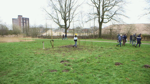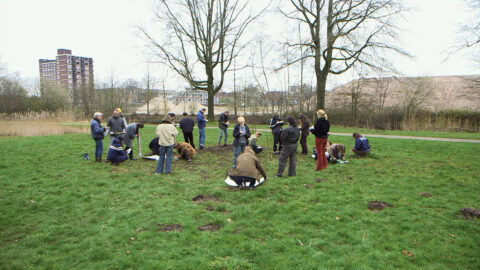 En zo sta ik op een zondagmorgen met een notitieboekje en pen in mijn hand in het Zaartpark in Breda. Ik heb me heb aangemeld voor het Kadastraal Fenomenologisch Landmeetonderzoek geleidt door kunstenaar Bo Emmens. In de uitnodiging beschrijft Emmens het onderzoek als volgt: ‘U bent officieel opgeroepen voor het noodzakelijk uit te voeren landmeetonderzoek, ten einde het volledig en totalitair verstaan van de waarheid in al haar fenomenologische facetten, verscholen in het Nederlandse landschap, door middel van kadastrale, geologische en artistieke methoden van meten, betreffende het afgebakende gebied binnen het Bredase Zaartpark (oprichting ca. 1940) bekend onder de naam het ’49m2 project’, daar de markering een vierkant van zeven bij zeven meter beslaat…’ Ik ben heel erg benieuwd wat me te wachten staat want deze tekst maakt me niet veel wijzer.
