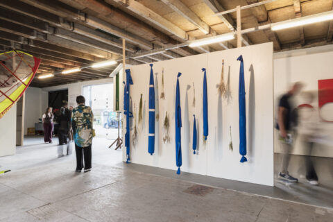 Sinds 2020 observeert ieder seizoen een andere kunstenaar het stuk grond, wat de kracht van het project is. Niet het bouwen van grote dingen, niet het toe-eigenen, maar door te kijken wat er gebeurt, is meestal het startpunt van een proces dat nog lang kan doorwerken. Er komt ruimte voor secuur onderzoek dat kan leiden tot het tonen van grote verbanden, die op zo’n stuk grond beginnen maar wereldwijd reiken. Dat laat het werk van het collectief de Onkruidenier bijvoorbeeld zien, in hun project GRASSROOTS: Seeds for (x) change (2024). Ze onderzoeken de migratie van lokale grassoorten in de wijk Spangen. In hun typerende blauwe kleur geven ze het grasonderzoek haast ritualistisch vorm, waarin ze laten zien hoe diep onze maatschappijen verweven zijn met verschillende gras- en graansoorten. Een enkele grasspriet is verbonden met het brood dat we dagelijks eten, wat onze economieën vormt, die onze leefwereld bepalen. Een enkele grasspriet is in verband te brengen met wereldwijde, menselijke en ecologische systemen. In het werk van Bo Emmens, die in zijn werk Kadestraal Fenomenologisch Landmeetonderzoek 49 Vierkante Meter (2024) een zelf opgerichte Landmeetkundige Vereniging de grond in kaart liet brengen, mat iemand nauwkeurig dat de grasspriet aan de westzijde van het veld 0,3 cm breed was. De absurde nauwkeurigheid ontroert me, en doet me eveneens beseffen hoe weinig ik begrijp van schaal en afstand. Metingen zijn weliswaar essentieel in de bouw, daarbuiten lijken ze een abstracte, losstaande wereld. Ik ben dan ook geen architect die zich geen onnauwkeurigheid kan permitteren omdat de kleinste misberekening in een bouwplan het instorten van een gebouw kan betekenen.