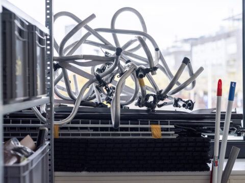 Dat was erg waardevol en fijn, en ook leuk dat het drie maanden duurde. De belangstelling van Link kwam al tijdens het afronden van mijn masterstudie. Vervolgens kwam de vraag om te exposeren, direct na het afstuderen. Dat maakte, omdat mijn werk daar stond, ook dat ik tijd had voor andere dingen zoals verhuizen naar een andere studio. Door mijn werk na de eindpresentatie direct naar een andere plek brengen, het daar te bevragen en andere formaties te maken, bood me dat een reflectiemoment wat me geholpen heeft. En ik heb daar de volledige vrijheid gekregen om in te richten, mijn eigen keuzes te maken en gedurende de expositie ook dingen te veranderen. Dat heb ik ook telkens gedaan als ik daar was en zo voelde het als een presentatieruimte én een studio. Daardoor kwam ik niet vast te zitten na mijn eindexamen en kon zo langzaam voortbewegen.