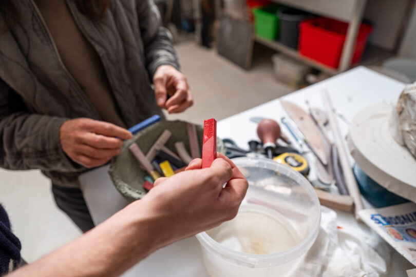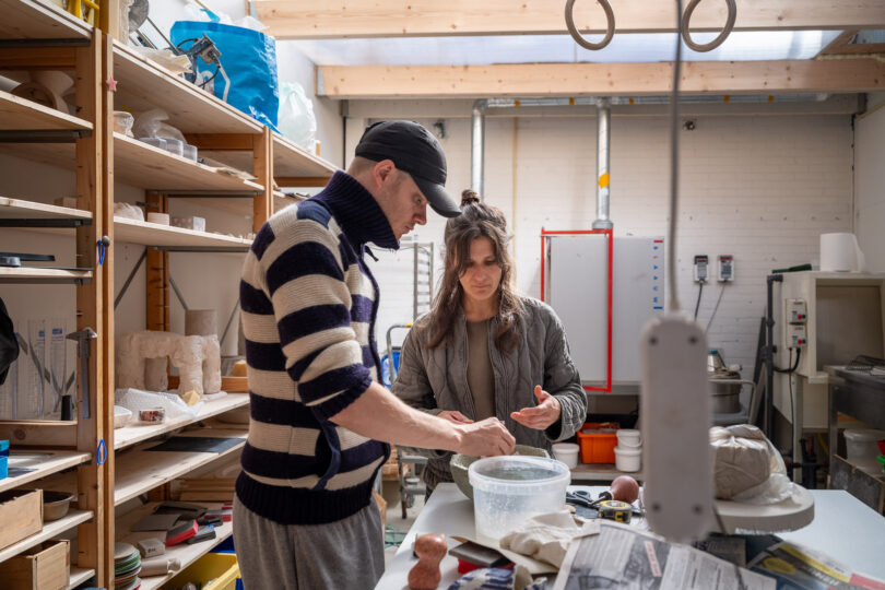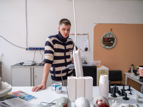 We bespreken samen zijn werk om beter te begrijpen welke keuzes hij maakt in zijn proces en waarom. Soms is dat een oefening in woorden geven aan waar zijn werk over gaat. We zijn ook bezig met heel praktische zaken, zoals structuur en overzicht aanbrengen in een planning – iets waar werken met keramiek om vraagt, zeker in combinatie met andere werkzaamheden. Ik ben heel benieuwd naar de ontwikkeling van Lesja’s kunstenaarschap in combinatie met zijn vakmanschap, en hoe deze twee voor hem belangrijke aspecten elkaar kunnen voeden.