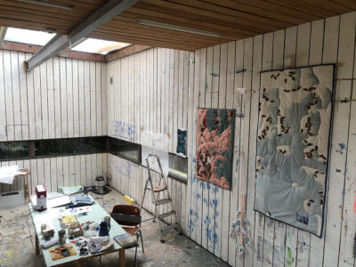 Wat ik doe is de ruimte innemen als Artist in residence om een beeld te maken. En toen was Danielle over, maar die woonde hier al bijna, daarom spreken we je ook samen. Het plan was sowieso om samen hier te werken en een tentoonstelling te maken, en die is er nu ook.