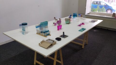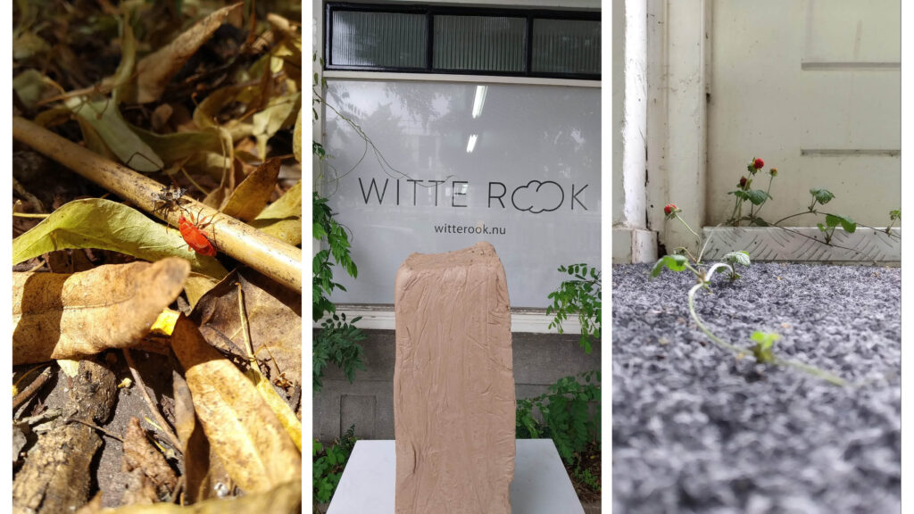 Als je de afgelopen dagen voorbij Witte Rook bent gekomen, heb je wellicht een sokkel buiten zien staan, precies voor het raam. Het raam is een dunne scheiding tussen de buitenwereld en de werkruimte van Esther Hoogendijk. Esther onderzoekt de begrippen verval, vergaan, verdwijnen en verweren. Door met natuurlijke producten te werken maakt ze het proces van vergaan inzichtelijk en visueel. Bij Witte Rook continueert ze haar onderzoek naar mogelijkheden kunstwerken te maken die gedurende een periode langzaam veranderen. Luchtverplaatsing, verdamping, afbreken en het aanraken van een kunstwerk spelen hier een grote rol in. Met name het aanraken van een werk wil Esther verder onderzoeken in haar werkperiode. Ze zoekt antwoorden op de vraag wat als een kunstwerk stuk mag gaan en doet dit door kunstwerken te maken en te plaatsen in de openbare ruimte.